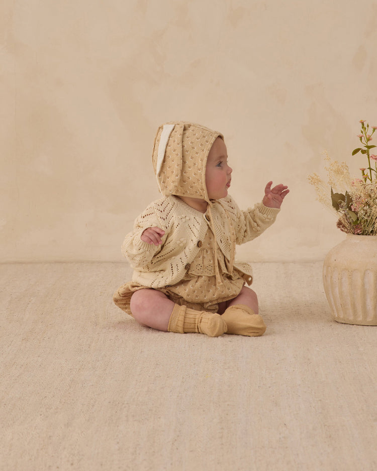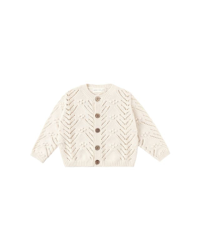 This Knit Cardigan features a beautiful knit design and coconut buttons for an extra sweet look.