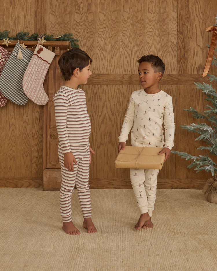 Soft and cozy, this pajama set features a long sleeve top and coordinating pants, crafted from a brushed jersey for ultimate comfort.