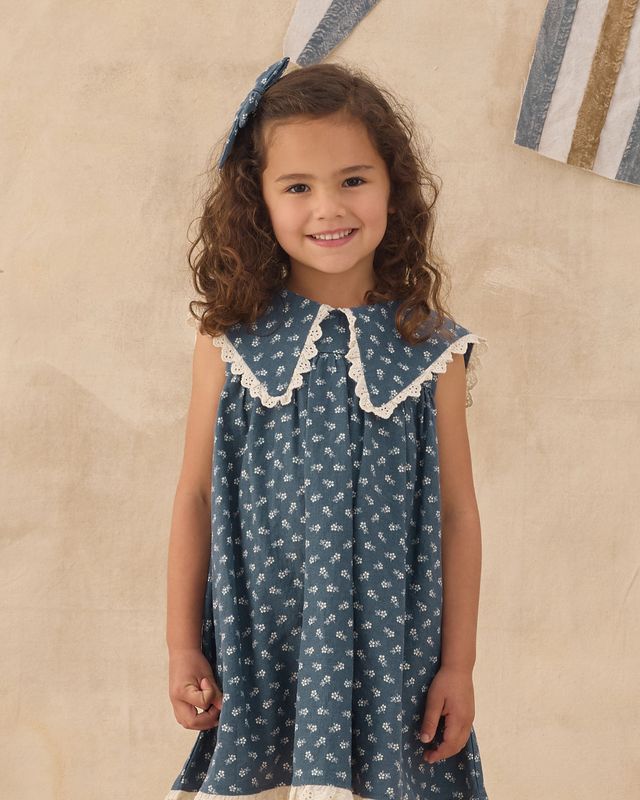 A fun and fancy Porter Dress is a vintage-inspired standout with its darling oversized sailor v collar and pleated skirt with eyelet detail.